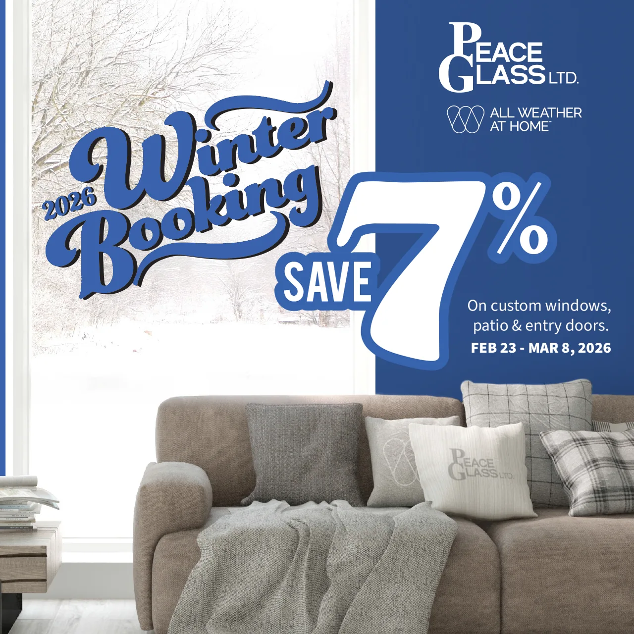 TERMS AND CONDITIONS: Save 7% on all custom windows, custom sliding patio doors and custom entry/garden door orders. Excludes all stocked (Metro) series windows and patio doors, Classic Series doors, attic hatches and interior glass products. Regular production, shipping and delivery policies apply and are subject to current lead times. All Weather at Home reserves the right to change lead times based on plant capacity. This promotion may not be combined with any other special offers or promotions. Discount applies to door & window order subtotal only. Taxes, freight/shipping and any installation fees are extra. Discount valid on orders placed February 23 to March 8, 2026.